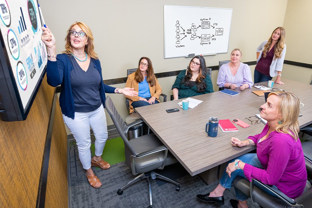 With Paradigm’s branding and design services, our award-winning team of marketing strategists and graphic designers considers the psychology of design to create a visual identity that resonates with your audience on a subconscious level, capturing their attention and keeping them engaged. We’ll help you develop a brand strategy that positions your business as an industry authority, helping you build trust and recognition with your target audience. Our team will identify the core values that define your brand and translate them into a purposeful visual strategy, integrating color palettes, typefaces, and imagery for consistency and impact.